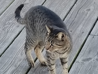 | Riley reincarnated? This is the cat at the pump out at Dog River. |